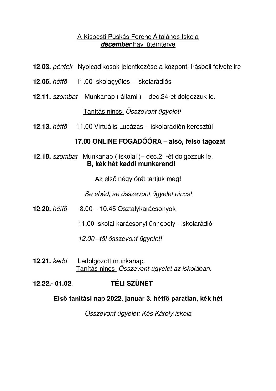 December havi programok
